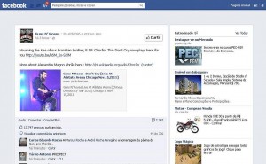 2) A banda americana Guns n’ Roses homenageou Chorão no Facebook com um vídeo da música “Don’t Cry” e divulgou postagem lamentando a morte do cantor. “Em luto pela morte de nosso irmão brasileiro, descanse em paz, Chorão”, diz a mensagem em inglês. A banda ainda disponibilizou um link da Wikipédia para que seus 20 milhões de seguidores no Facebook conheçam mais sobre o Chorão.
