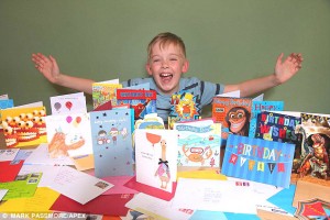 Após aniversário sem amigos, garoto recebe 400 cartões do mundo todo