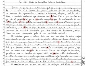 1) Redação considerada modelo pela Fuvest apresenta mensagem subliminar contra João Grandino Rodas, reitor da USP. O autor inseriu 15 letras em negrito ao longo do texto, formando a inscrição “Fora Rodas fora PM”.