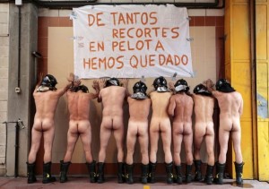 1) Bombeiros na Espanha ficaram nus em protesto contra os cortes do governo devido à crise econômica.
