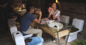 1) Restaurante de Shangai substituiu cadeiras por privadas e a mesa por pias. Não sei se a comida é uma… rsrs