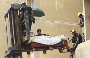 Khaled Mohsen Shairi, de 20 anos, foi levado de Jizan, sul da Arábia Saudita, para o hospital Rei Fahd, e teve de ser retirado de casa por uma empilhadeira.
