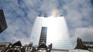 Um arranha-céu de Londres teria sido o responsável por derreter partes de um carro de luxo com o calor gerado pelo sol refletido em suas janelas.