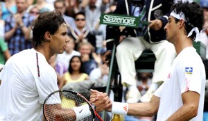 | Apesar de começar com 4/0 no primeiro set, Nadal venceu por 3 sets a 0 |